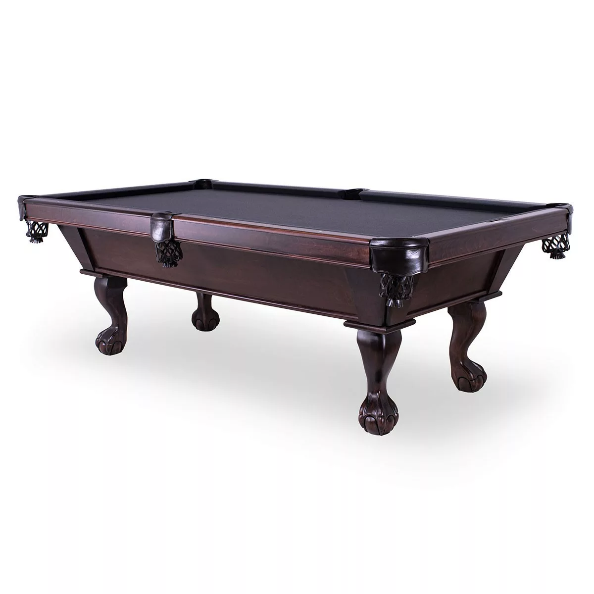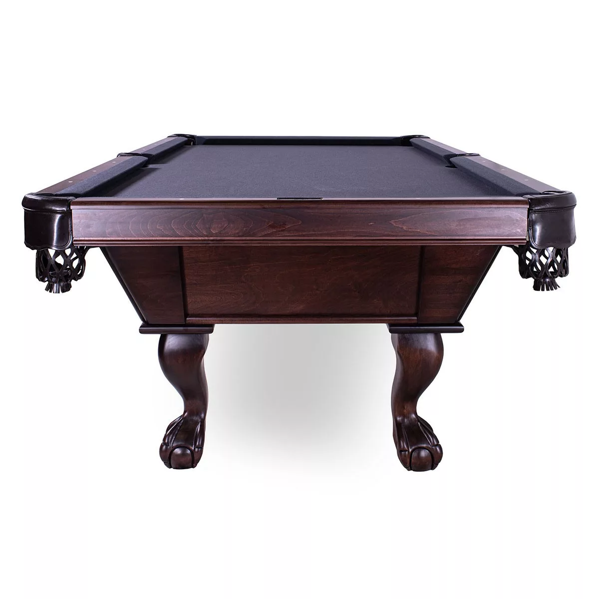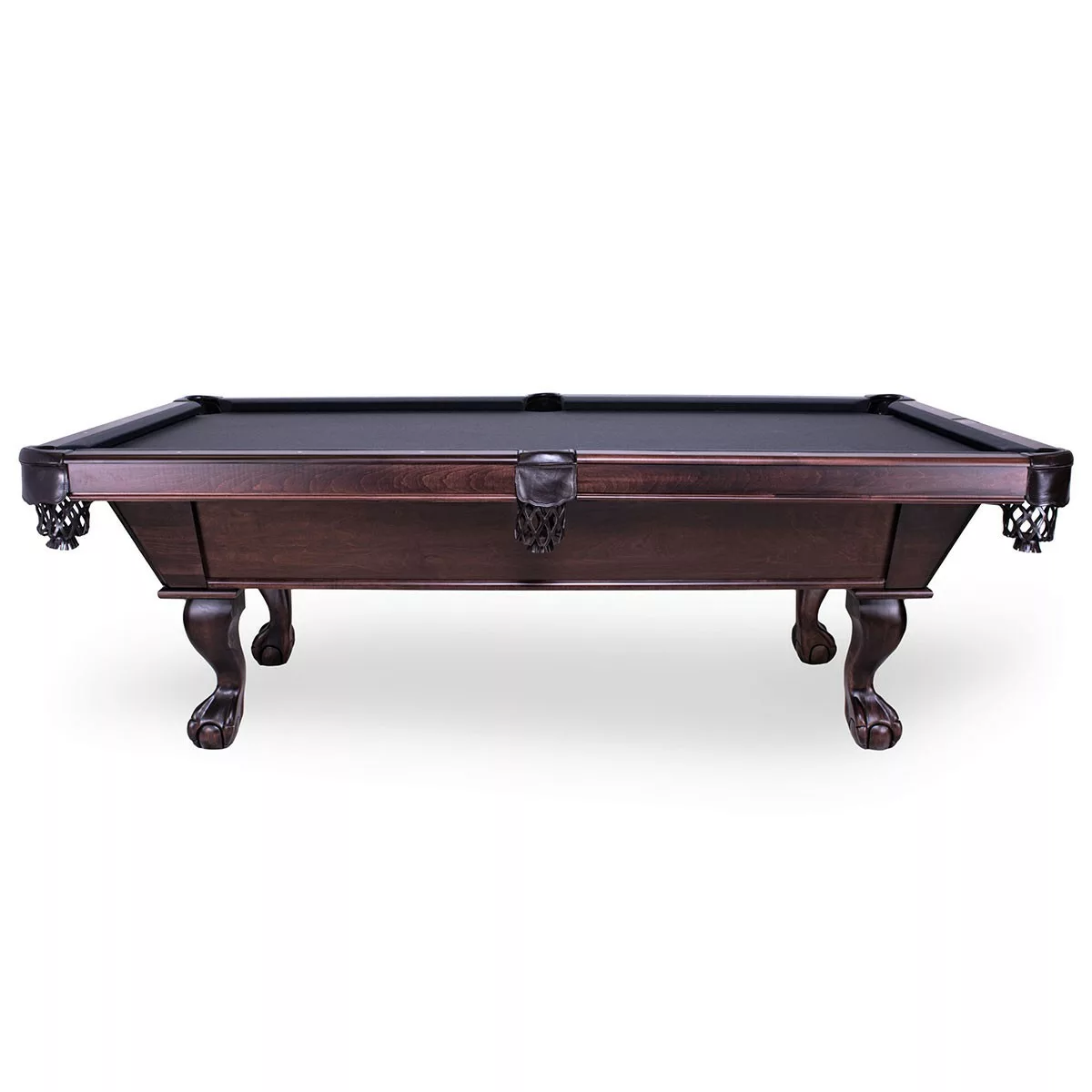 Classic carved leg pool table with straight line cabinet.